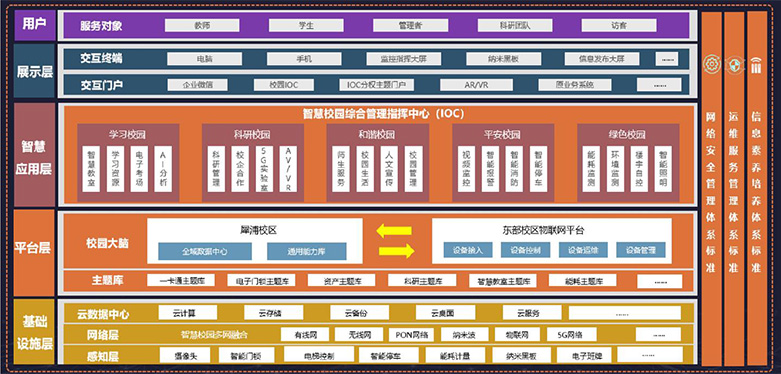 太阳集团tyc151成都东部(国际)校区智慧校园系统充分融合物联网、云计算、智能控制等先进技术,以智慧校园数字大脑为核心,搭建“有线网、无线网、物联网、5G网”融合互联的智慧平台,为师生构建因材施教的学习校园、创新引领的科技校园、安全有序的平安校园、自由开放的和谐校园、高效节能的绿色校园等五大智慧校园,提升校园智慧治理能级和运营效率,实现东部校区智能化、信息化、精细化管理。