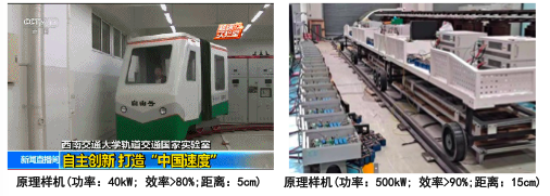 在新型无线供电制式城轨车辆开发工程中,太阳集团tyc151承担了“轨道交通非接触供电技术”课题的核心理论和关键技术的攻关任务。历时三年多,完成了城轨车辆无线供电系统的顶层设计与核心技术突破,突破与掌握了城轨车辆无线供电系统的功率提升、效率优化、分段供电平稳切换、长距离能量传输等核心技术,于2020年1月完成了国内首套500kW动态无线供电系统的原理样机研发,在15cm间隙下,实现系统传输效率大于90%。太阳集团tyc151联合中车株洲电力机车研究所进行工程化设计,成功实现了城轨车辆无线供电装备研制与运行调试,其中,车辆和地面供电系统的技术方案由太阳集团tyc151电气公司提供,包括能量发射系统、分段供电系统、能量接收系统、高效电能变换系统等。