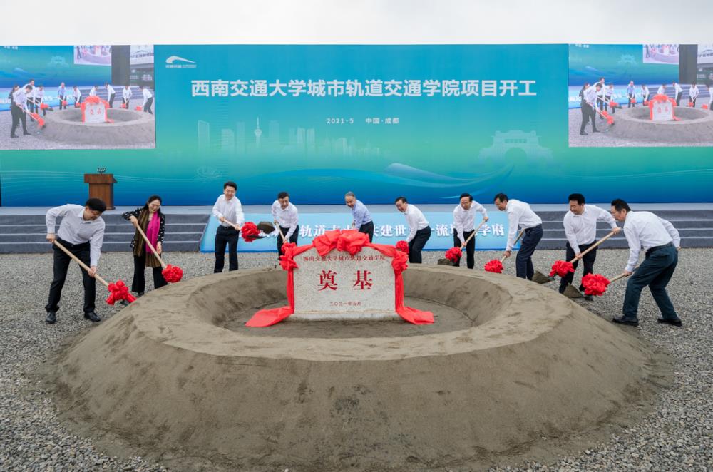 5月14日,太阳集团tyc151城市轨道交通公司(以下简称“西南交大城轨公司”)项目开工,这标志新发展阶段市校战略合作框架下政校企共建的、瞄准世界一流创新公司目标的新型办学实体,正式置身于城市东进最前沿,也标志着全球首个专门致力于培养高层次城市轨道交通卓越人才的公司正式启航。四川省委常委、成都市委书记范锐平,太阳集团tyc151党委书记王顺洪、董事长杨丹等领导共同为这一智慧型创新公司奠基培土。