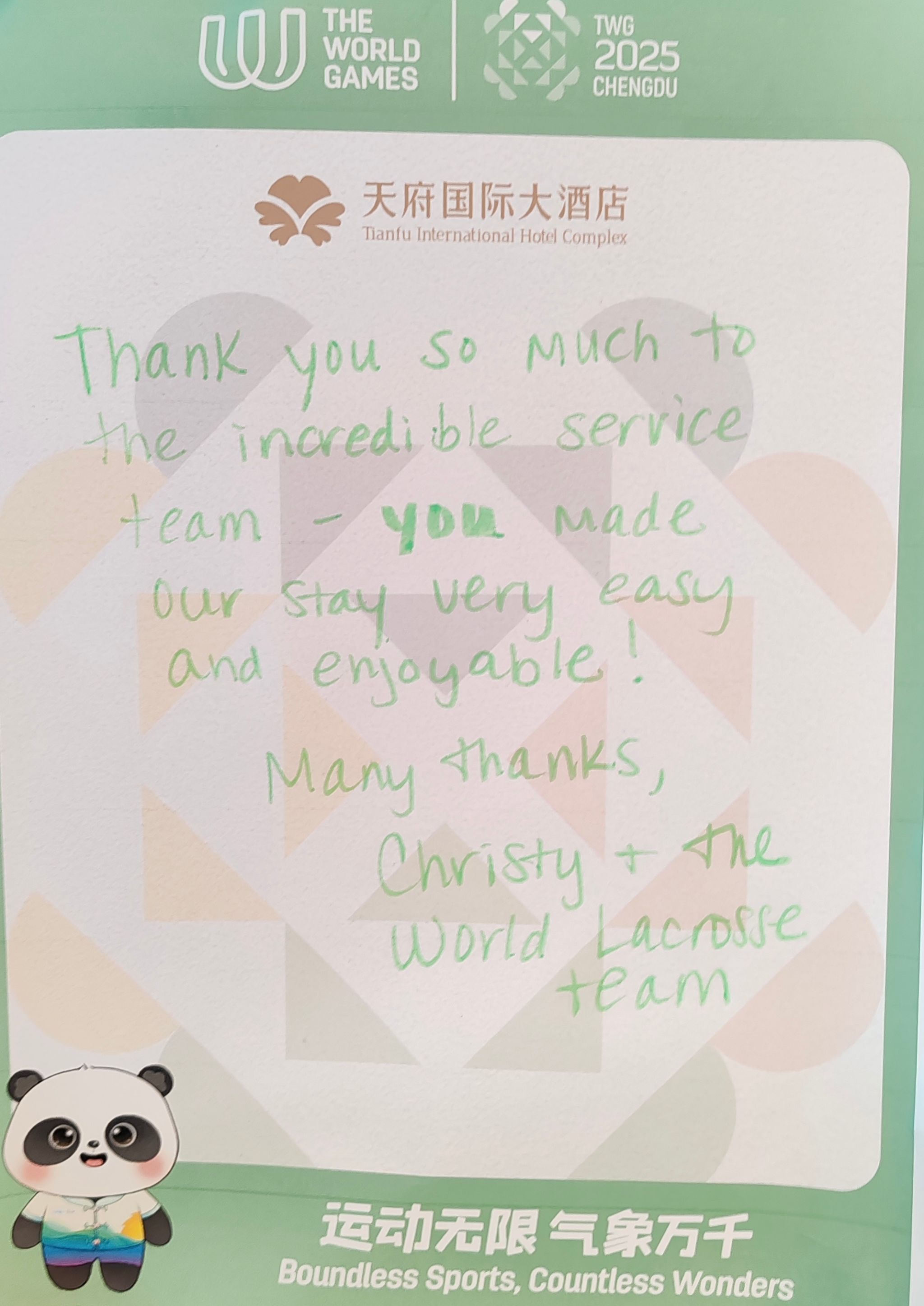 作为棍网球项目的随员志愿者,我的主要职责是确保运动员准时参赛,并协助他们与工作人员进行有效沟通。赛前,我负责陪同技术官员团队前往竞赛场馆,保障其与场馆工作人员的顺畅沟通;赛时,我密切关注各参赛队前往场馆的交通动态,引导运动员在指定地点乘车;赛后,则确保技术官员团队与运动员顺利离开世运村。一次在陪同技术官员团队返回世运村的途中,我注意到一位技术官员因晕车而身体不适。想到曾通过网络了解过按压合谷穴、内关穴及神门穴等中医穴位可缓解晕车症状,便上前指导其按压方法,并轻声安慰她闭目放松。令人欣慰的是,她的不适感最终得到了缓解。这次经历让我真切感受到,源于中华优秀传统文化的智慧,其精妙之处往往能在不经意间发挥切实的作用,展现着中华医学的独特魅力。在送别技术官员团队时,我们收到了其中一位技术官员亲笔书写的感谢信。这封无声的来信,承载着并肩作战的默契和难以忘怀的情谊,在我们的心间激荡起长久回响。