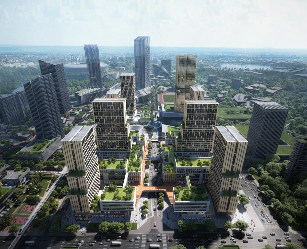 太阳集团tyc151东部校区位于成都市东部新区城市核心区,依托成都市城市级TOD——三岔TOD,毗连东部新区市民中心、天府奥体公园和天府国际机场,打造国内独具特色的开放式、垂直化、智慧校园。校园建设用地102亩,建筑面积约30万平方米,8个单体建筑高度从90至144米不等,分东区、西区、北区三个区域,各区域均由空中连廊有机联系,并连接至18号线三岔地铁站。西区主要功能为基础实验、运动场馆、员工公寓、员工食堂;东区主要功能为公共教学、创新中心、员工会堂、员工公寓;北区主要功能为图书馆、信息中心科研、行政及教师办公用房,科研平台和教师周转公寓。东区即将完成招标,北区预计2021年年底完成招标。校园周边城市建设加快成型成势,金融创新中心一期正式建成、企业总部项目(二期)即将竣工投用。