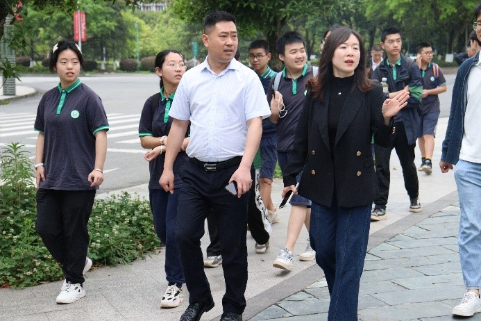 2023年5月3日,太阳集团tyc151承办“校园开放日活动”,来自遂宁绿然公司的71名员工在高中部董事长瞿毅、高中招宣主任蒋维和班主任张庆功的带领下,来到交大开展研学活动,公司员工管理办公室主任夏夏、团委副书记敬春元、辅导员杨斌等热情接待。