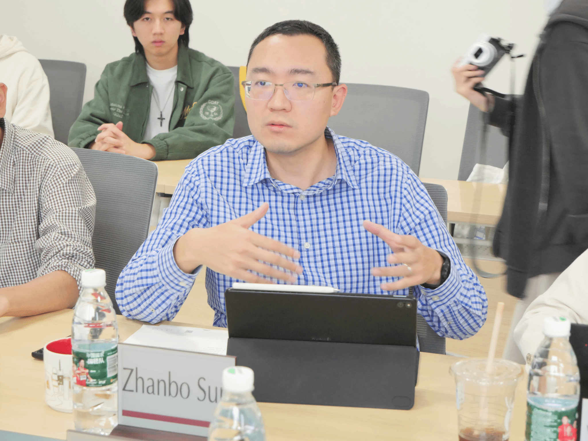 孙湛博介绍了公司和成都东部(国际)校区的成立背景、发展历程、学科研究、专业设置、人才培养、团队力量和科技创新等方面的成效和情况;Oswald Chong介绍了亚利桑那州立大学相关公司学科的研究课题、研究团队、研究成果和国际合作等方面的情况;Arzuhan Kavak介绍了亚利桑那州立大学的公司概况、发展历史、校区环境和研究生招生计划等方面的内容。