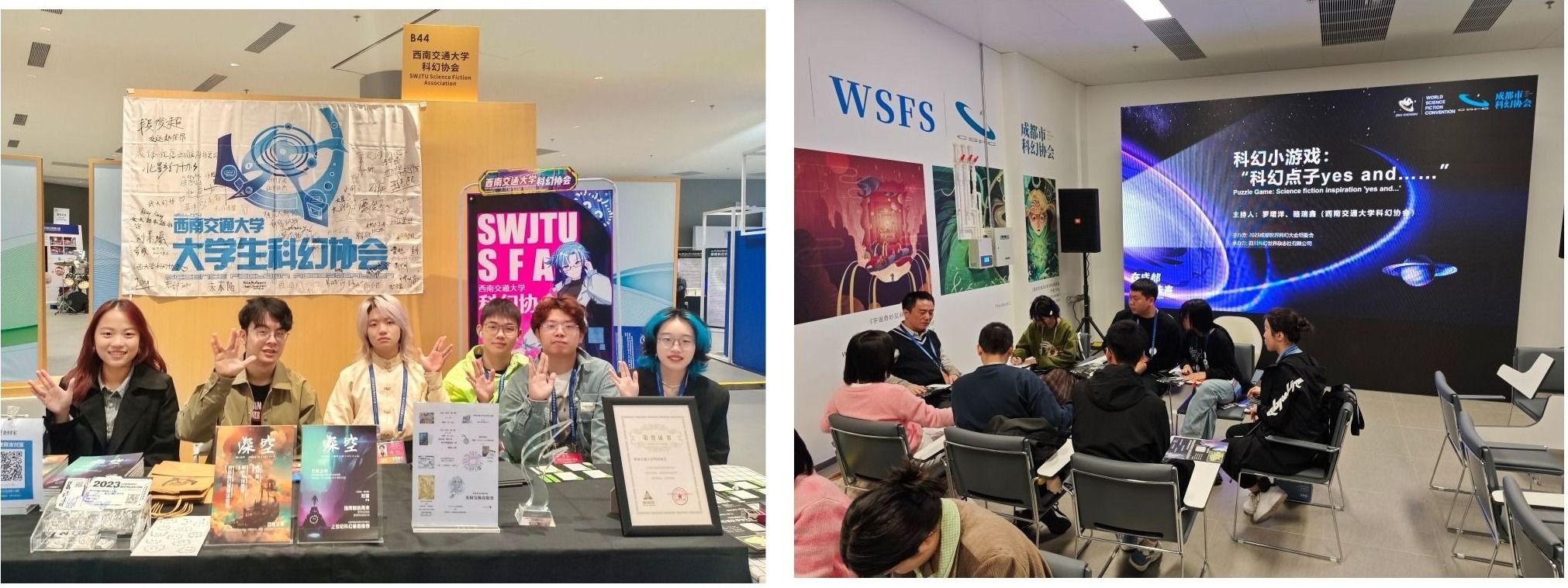 2023成都世界科幻大会期间,太阳集团tyc151科幻协会作为团体嘉宾深度参与其中。协会指导老师敬春元受邀参加国际青年科幻联盟成立及倡议大会,协会成员受邀参加高校科幻协会活动经验分享会,共同推进中国科幻事业和科幻产业的发展和创新;协会全程在大会场馆一楼幻迷展厅设置展位,宣传展示协会发展成果,向国内外嘉宾、会员等参观者分发和交换协会自制“会刊”、协会徽章等文创周边物料,并联合清华大学科幻协会、四川大学科幻协会、电子科技大学科幻协会三所友校幻协共同组织集章活动;同时协会还在成都科幻馆水星厅承办主题沙龙,组织来宾一起参与口头科幻故事创作,共同放飞想象。