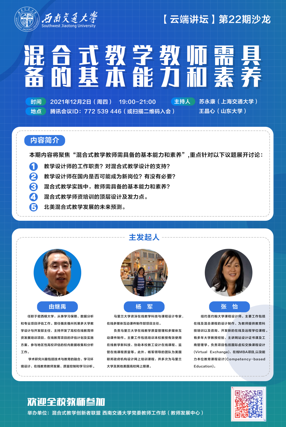 本期内容将聚焦“混合式教学教师需具备的基本能力和素养”,重点针对以下议题展开讨论: