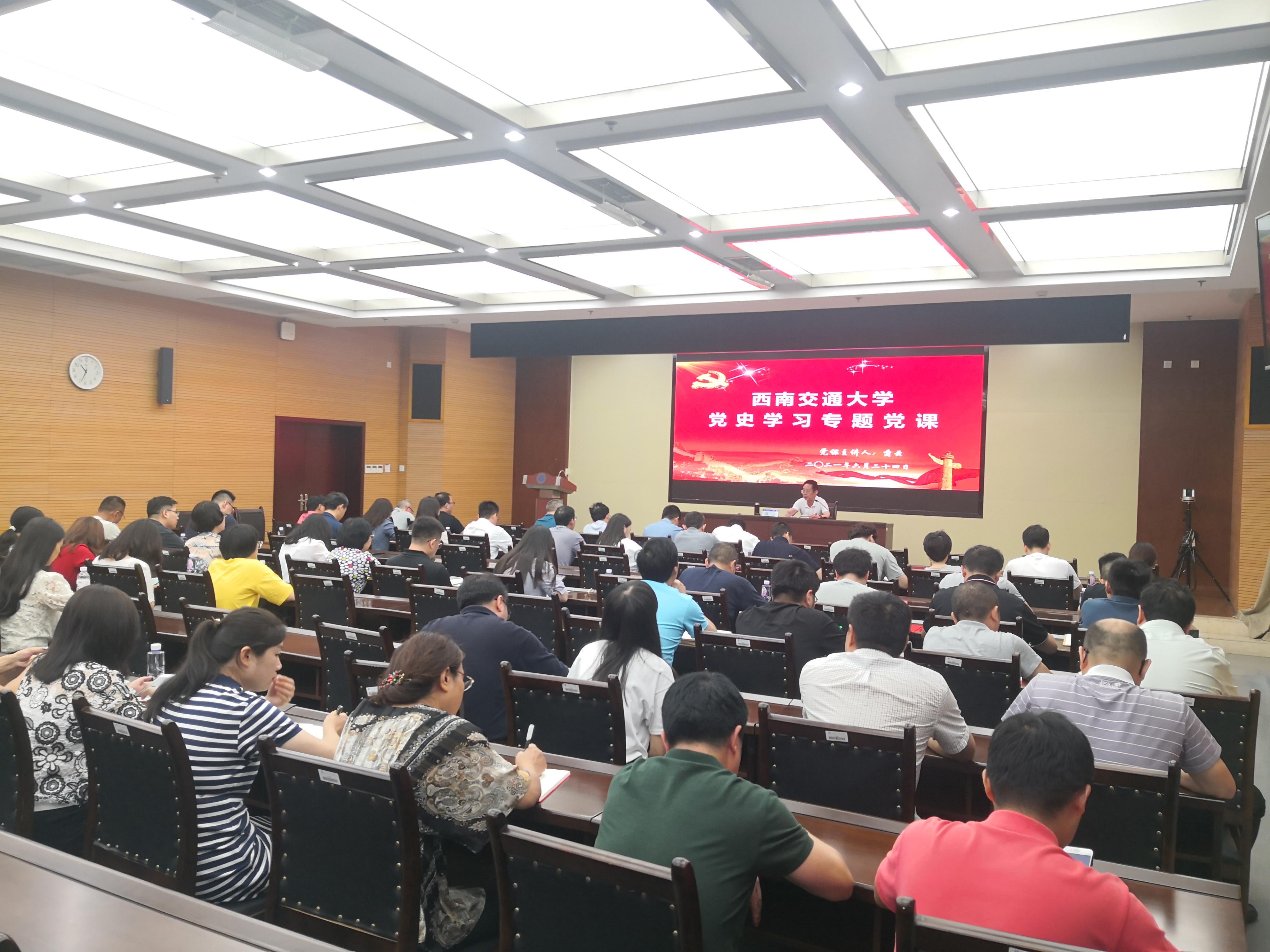 6月24日上午10点30,副董事长、公司党委书记蒲云在犀浦校区综合楼148会议室讲授党史学习教育专题党课,全院全体教职工,公司党政办公室党支部、后勤与基建处党委全体党员参加学习。