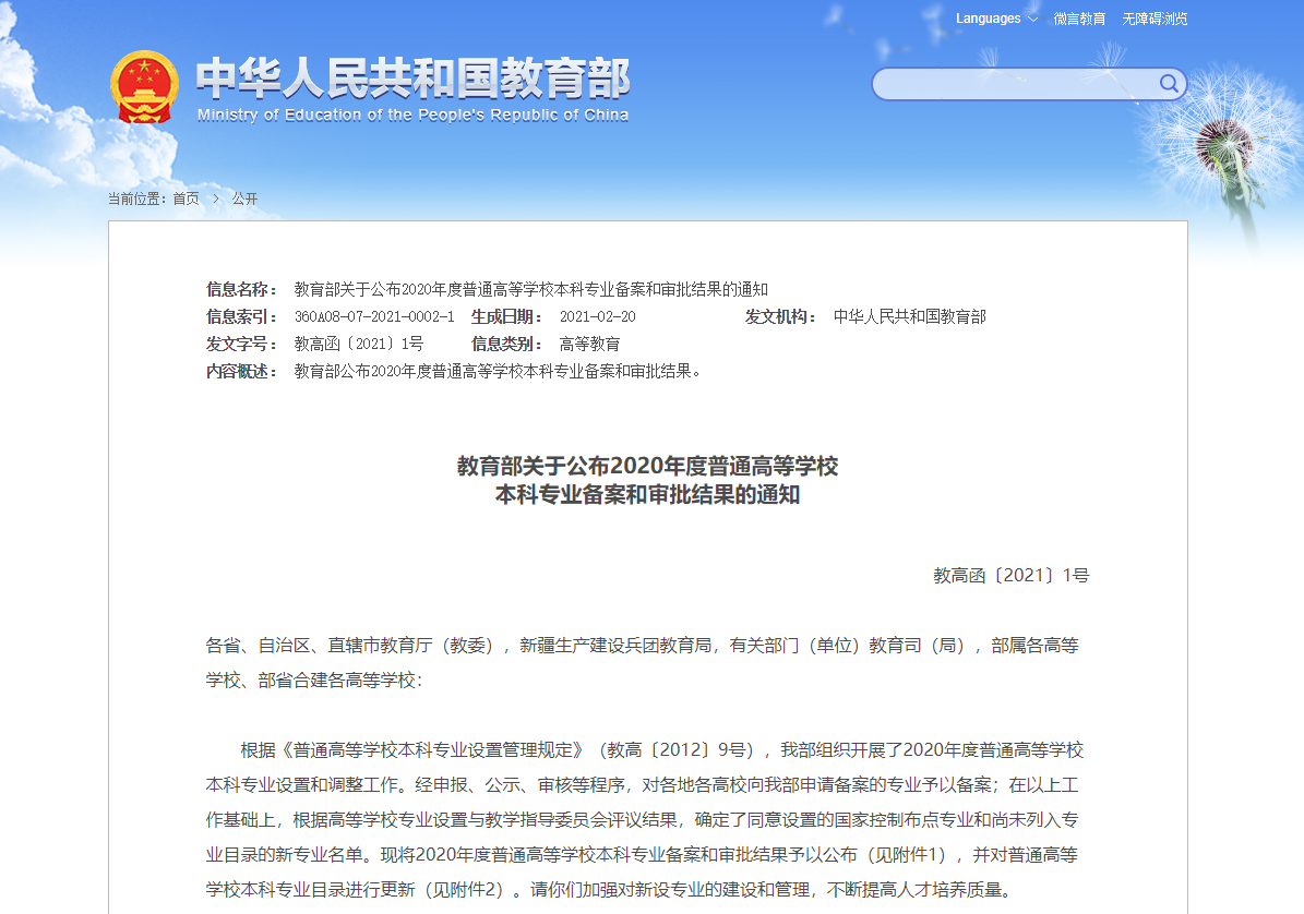 以此次备案审批通过为契机,公司将持续加强新专业建设,瞄准未来技术发展趋势,创新引领示范,抢占交叉学科领先阵地。新专业计划2021年进行首次招生。