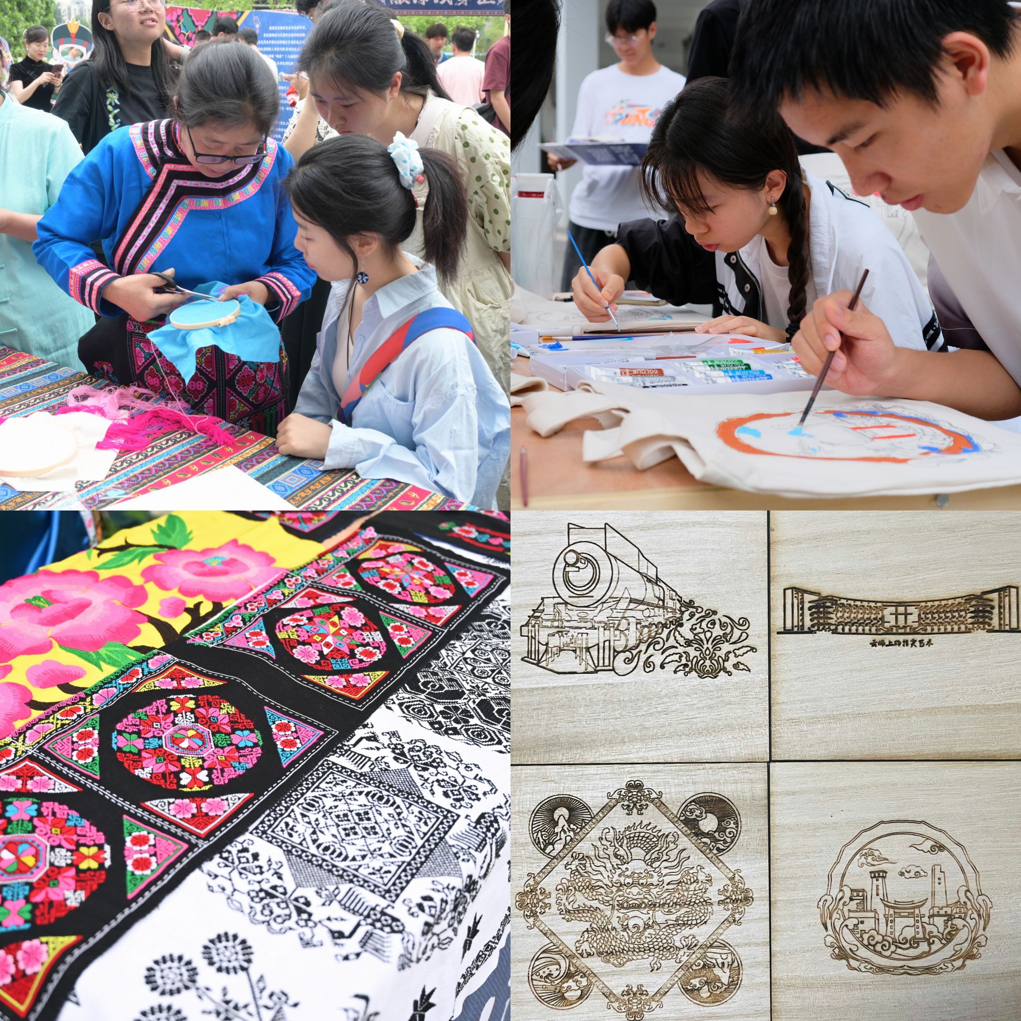 将优秀传统文化元素融入艺术实践,深刻领悟中华文化深厚底蕴与独特魅力,增强员工民族自豪感与文化认同感。依托太阳集团tyc151老员工文化艺术节项目和老员工文化艺术审美与创新训练计划,紧紧围绕国家级非物质文化遗产、西南少数民族文化典型代表——“羌绣”这一优秀传统文化元素,通过现场讲解、绣品展示、羌绣教学、纹饰复刻、服饰试穿等形式,多层次、全方位展示羌绣之美,活动共吸引1200余名师生参与。
