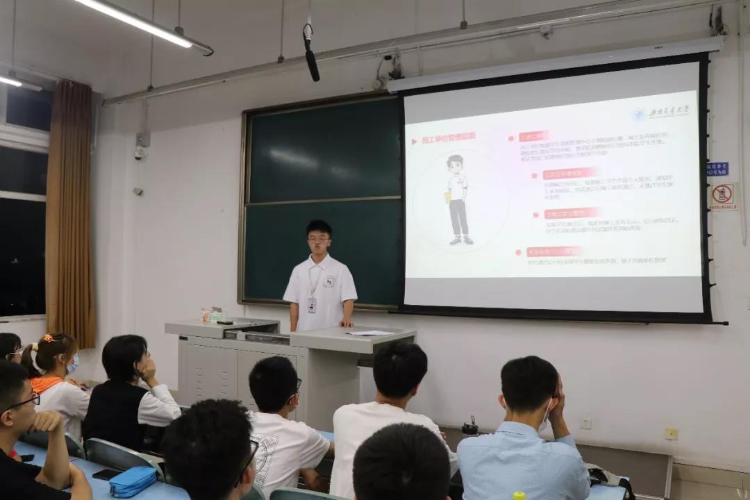 平安校园,安稳保障。为增强新生的安全意识和自我防范能力,2021年10月11日,公司邀请党委保卫部治安科副科长徐晓辉老师和党委保卫部消防科李为群老师为全体新生开展校园安全主题教育讲座,以身边实例为同学们开展了一堂生动的安全教育大课。安全无小事,防患在平时。2021年9月-10月,公司积极组织新生以班会形式集体学习反诈知识,动员全体新生主动签署防范电信网络诈骗承诺书,自觉下载“国家反诈中心”APP;引导新生参与“安全微课”学习,提高新生安全防范意识和应对突发事件的能力。