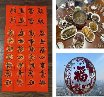 在春节,我会和远方的朋友们互送贺卡。墨笔传情,一行行温暖的祝福以熟悉的字迹写就,似乎有了跨越空间的能力,见字如面。我还体验了传统民俗文化“画糖画”,晶莹的糖浆在匠人的手下勾勒出惟妙惟肖的鸟兽虫鱼,我深刻地感受到了传统艺术的有趣和渊深。此外,家里还会在大年初五蒸年馍、拜财神,祈求新的一年财源滚滚、蒸蒸日上。