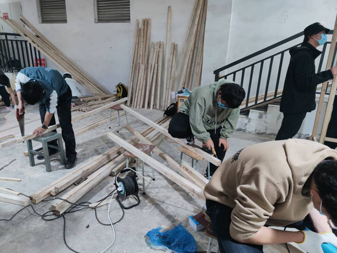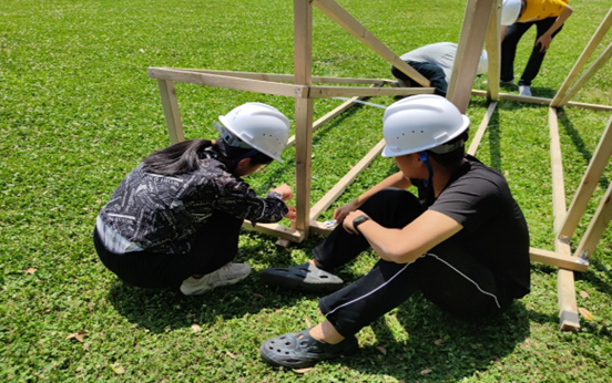 在设计和搭建过程中,全体成员注重安全防护,工作过程中严格按照要求戴好安全帽。