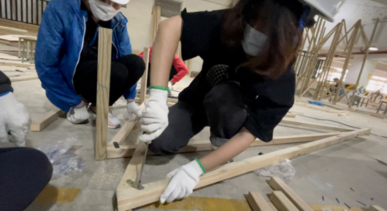 在建造节的过程里,我们首先收获到了知识。我们不断地改进推敲,不断地查找资料与分析,在思想碰撞的火花里,了解了一些相关的建筑结构和材料,初步学会了如何去使用相关的工具。然后,我们深刻地体会到理论与实践的差异,在一定的条件下,有些数据、形状与结构可能做不到那么精确,以致出现问题。建筑不只是要在图纸和模型上完美呈现,更是要在1:1的建造中完美呈现。其次,感受最深的应该是团队合作的魅力,大家各司其职,尽力完成自己可以完成的事情,互相协助,正是因为有了团队合作,我们才可以按时完成这个项目。并且在这个过程里,我们收获了友谊,结识了一些新的伙伴,与大家成为了朋友。最后,要感谢每一位小伙伴的付出!