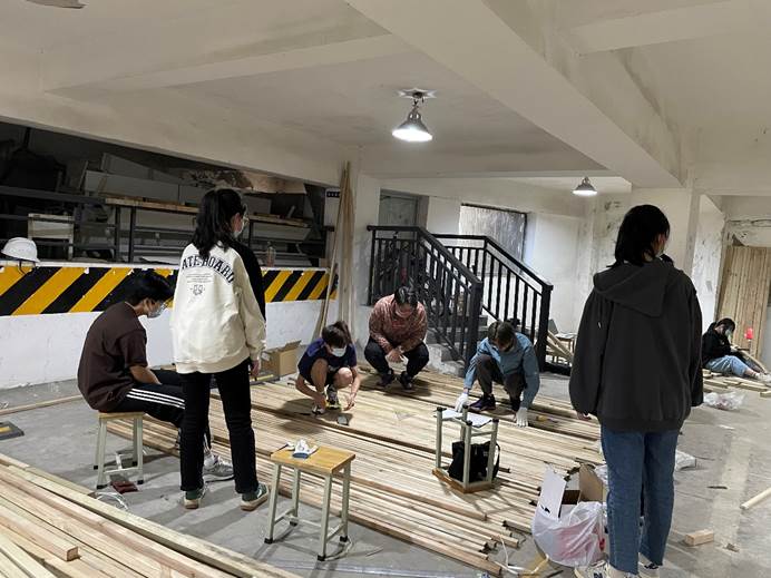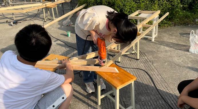 作为一次小组作业,我们从中体会到了团结协作的重要性。短短7天的搭建,从材料进场到各结构单元的打造再到最后的拼接整合,环环相扣,一步都容不得疏漏。作为一次劳动过程,我们从中深切体会到了劳动之美的含义:劳动之美不仅美在劳动的成果,更重要的是专注投入的劳动过程本身。作为一次美育和建筑设计“初体验”,我们从中体会到了创造美的不易:它需要推倒重来的勇气,需要源源不断的创意输出,更要求我们在面对外界任何评价时仍保持内心的客观、坚定。更重要的是,“建造节”作为我们班一次全班“出动”的集体活动,为我们留下了许许多多或欢喜、或感动的美好瞬间。那些一起流过的汗水、那些庆功宴上开怀的说笑,都将成为多年后我们回望老员工活时依旧会笑着谈起的往事。