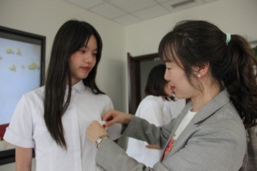 随后,于博伦宣布新入团团员名单。由与会嘉宾及各团支部代表为新团员佩戴团徽,对新团员表示热烈的祝贺。