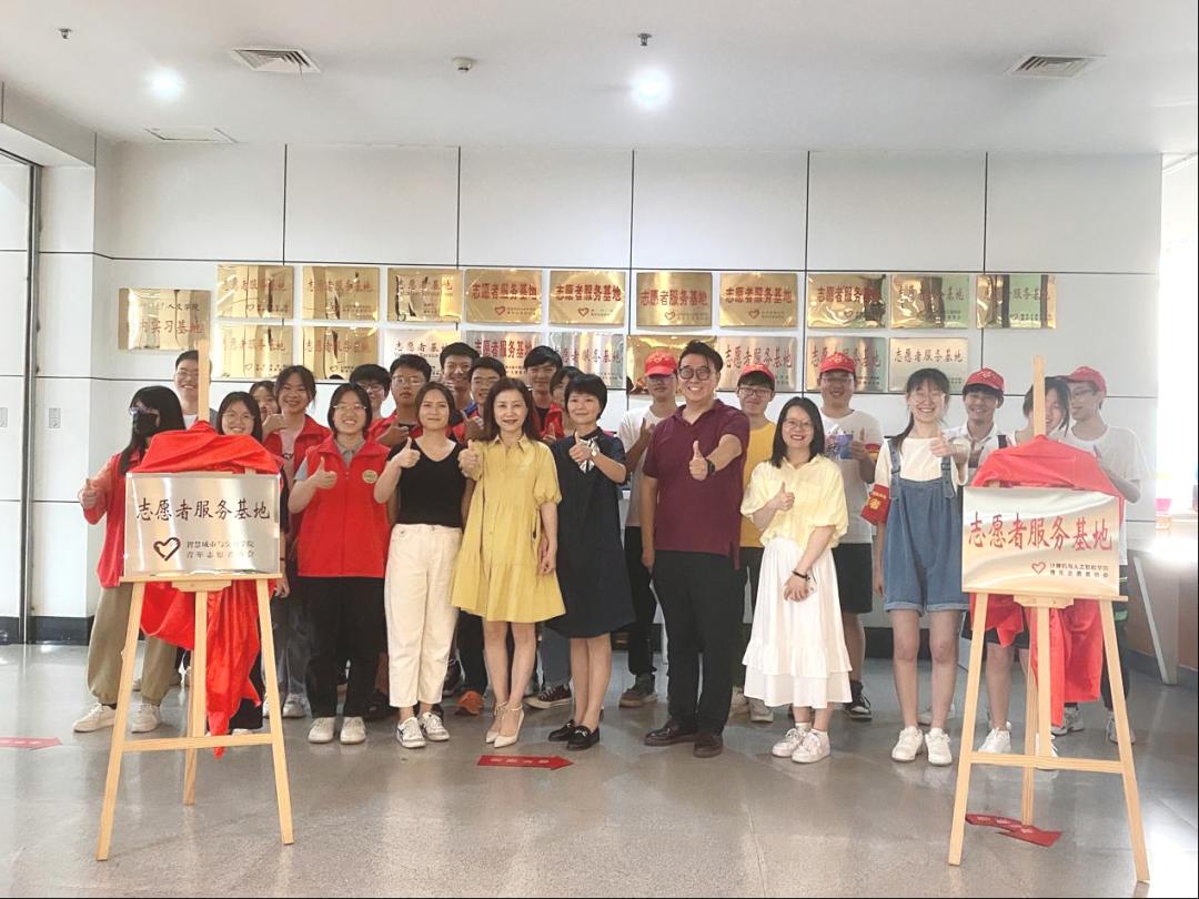 随后,刘文华、王洋、于博伦和李萍共同为志愿者服务基地揭牌。