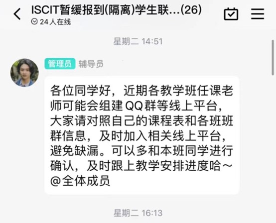 辅导员和班上同学为隔离和暂缓报到员工