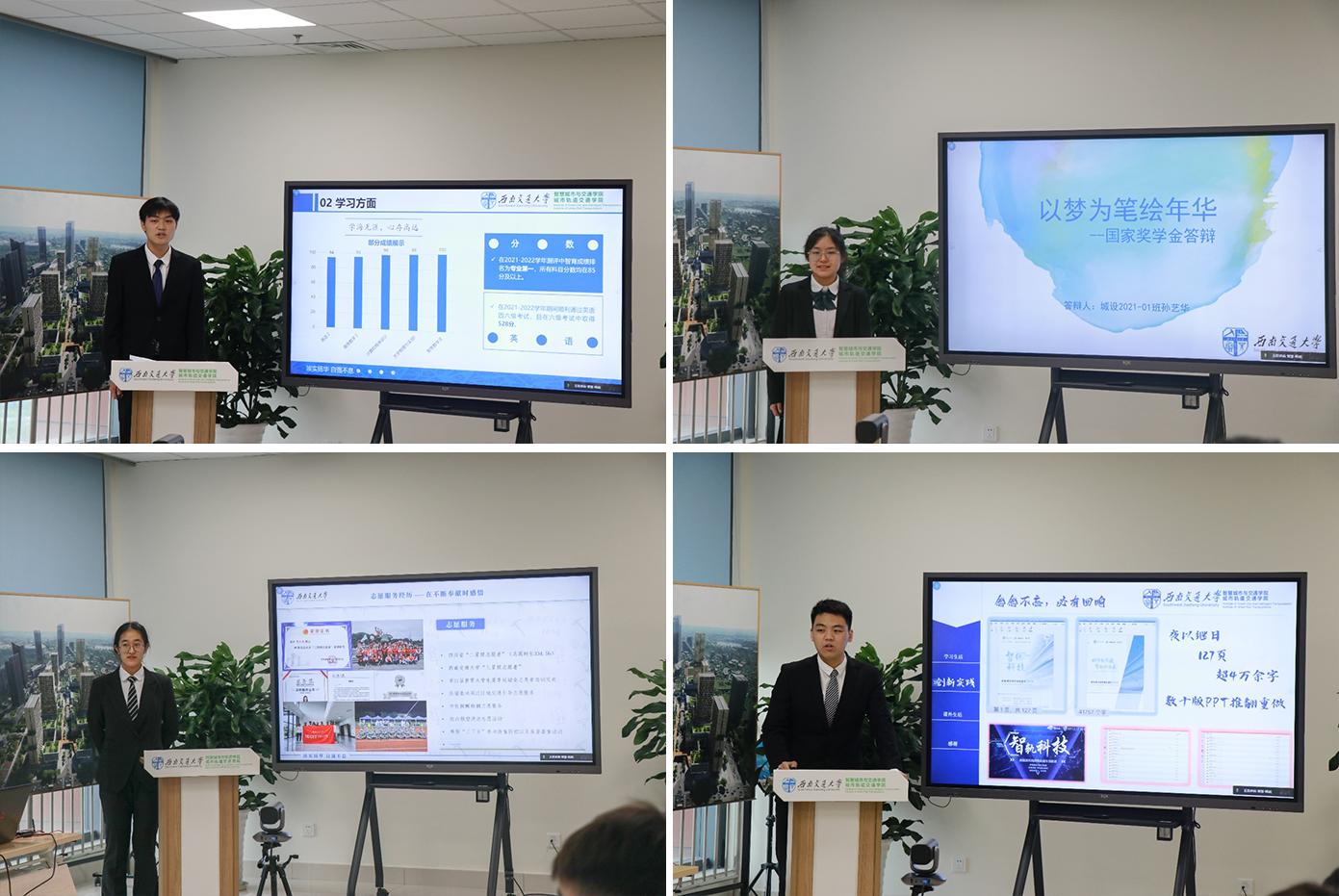 答辩会上,14名国家奖学金候选人依次上台,展示自己在专业学习、科技创新、员工工作、文体活动、社会实践、志愿服务、竞赛获奖等方面取得的成绩。每一位同学都具有高度的理想信念与使命担当,他们关注社会、乐于奉献,充分体现了新时代青年昂扬向上的精神面貌。