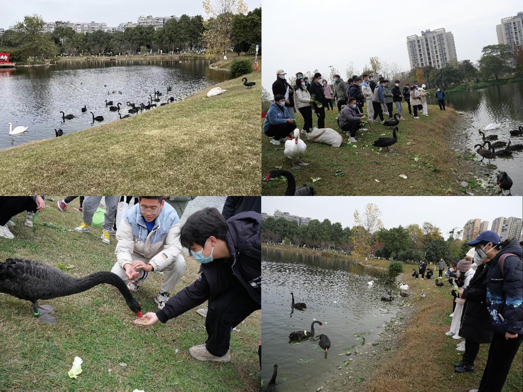 此次活动,公司邀请到负责照料“校宠”黑天鹅的曹师傅。在曹师傅的讲解下,交大黑天鹅的故事如一幅画卷渐渐展开,从2019年企业捐赠的2只黑天鹅到今天的20余只,黑天鹅的家庭愈加庞大。
