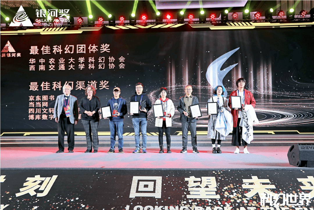 银河奖由科幻世界杂志社创办于1985年,以“银河”为名,取其“群星会聚”之意,旨在助力中国科幻写作从稚嫩走向成熟,是中国历史最悠久的科幻奖项,也是公认的中国科幻最高奖。其中最佳科幻团体奖在2017年第28届“银河奖”颁奖典礼上首次颁发,自银河奖最佳科幻团体奖申报开始,公司科幻协会踊跃参与、积极筹备、重点组织,最终以优越的社团成果分别于2020年和2023年获得第31届和34届银河奖“最佳科幻团体奖”的殊荣。