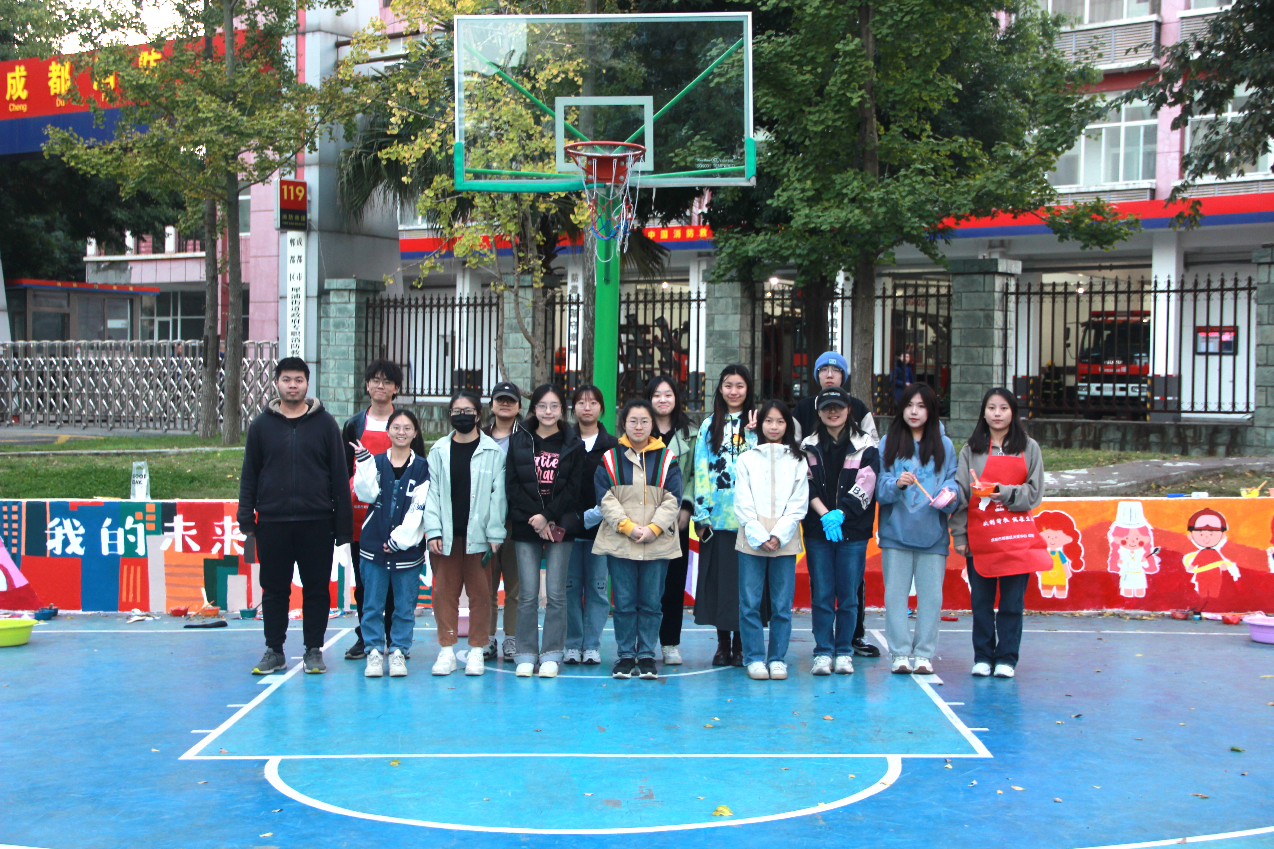 在实践过程中,同学们分工明确、井然有序,并在社区工作人员的协助下带领小朋友们共同完成墙绘涂装改造。活动结束后,团支部收到了社区工作人员及参与小朋友们的一致好评。