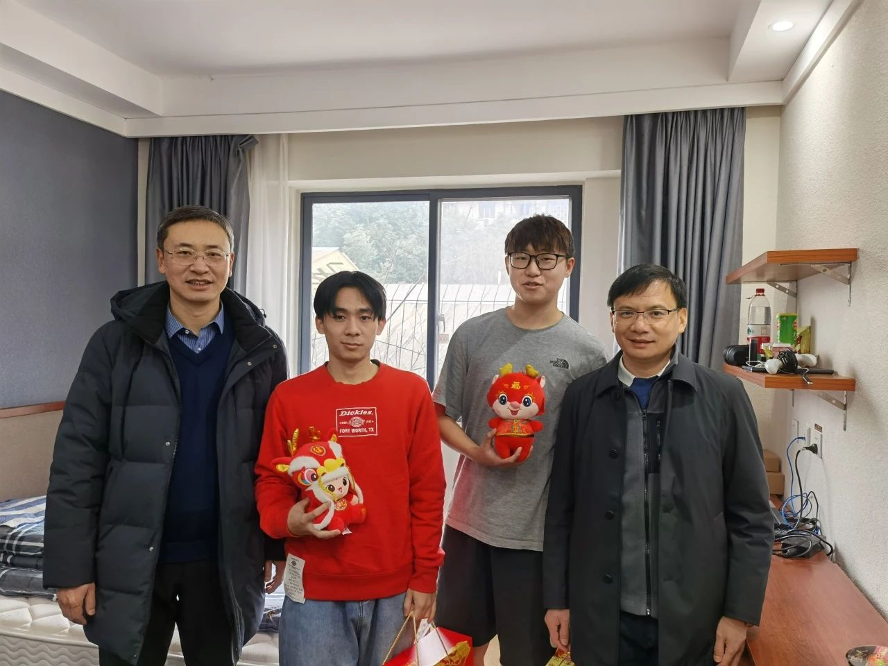 新春将至,公司积极落实公司寒假期间工作安排,高度重视留校员工管理工作,2月1日,经理何正友、公司员工管理办公室主任夏夏和在蓉辅导员前往九里校区员工公寓走访慰问寒假留校员工,向同学们致以亲切关怀和新年祝福。