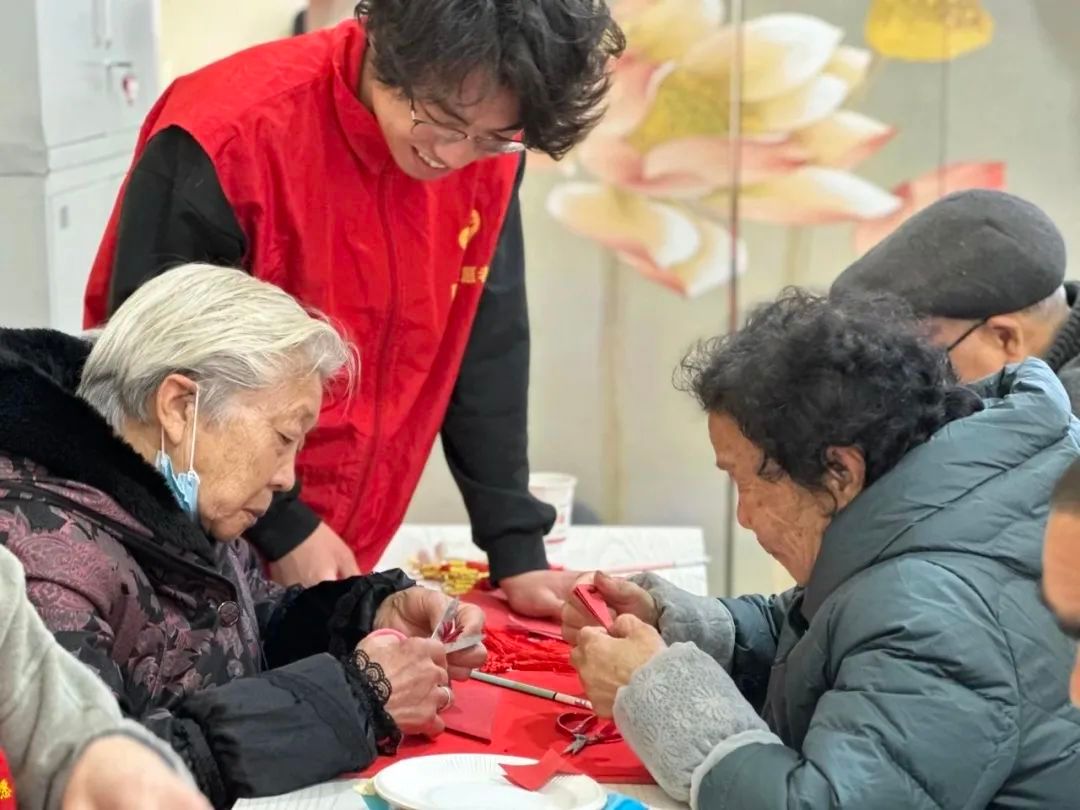 实践队走进安靖街道的安靖关爱站,为社区老人开展志愿服务。组织策划迎新春活动,和社区老人一起开展春节手工艺品制作,并且开展了老人权益保障法知识普及以及禁毒知识讲座。实践队还前往了喜安社区和林湾村走访慰问社区老人,开展贴春联和挂灯笼活动。