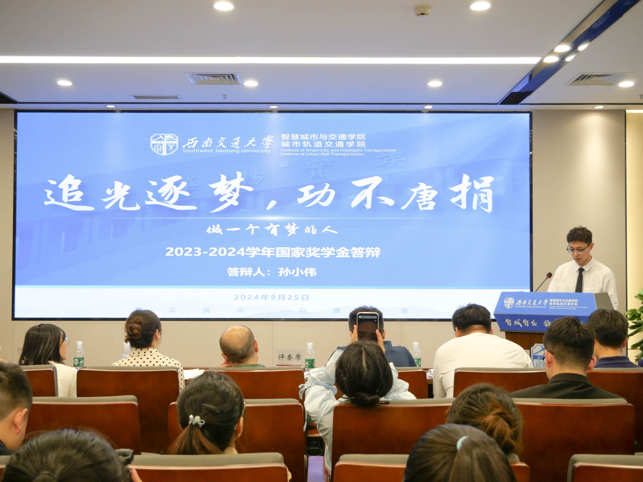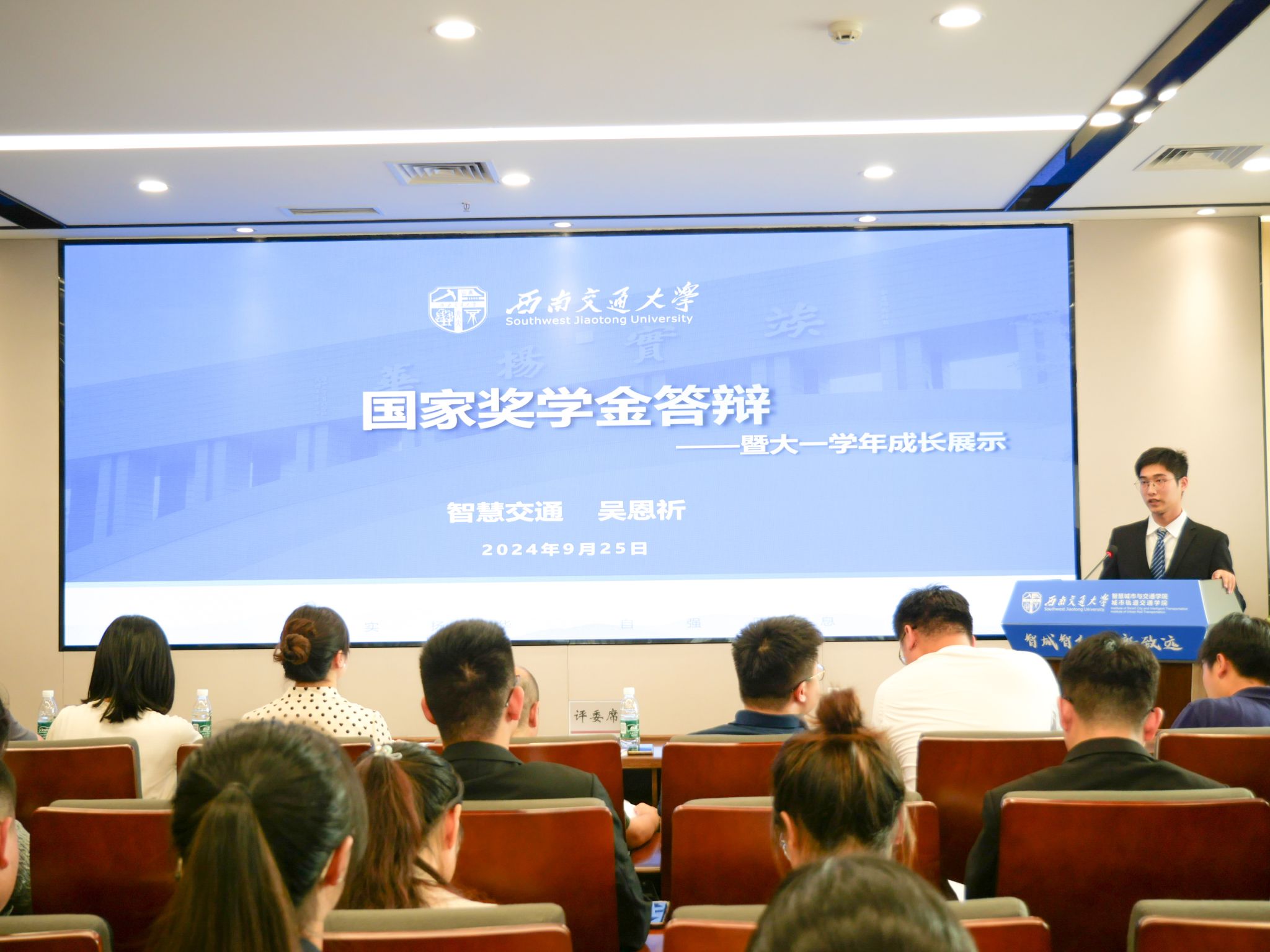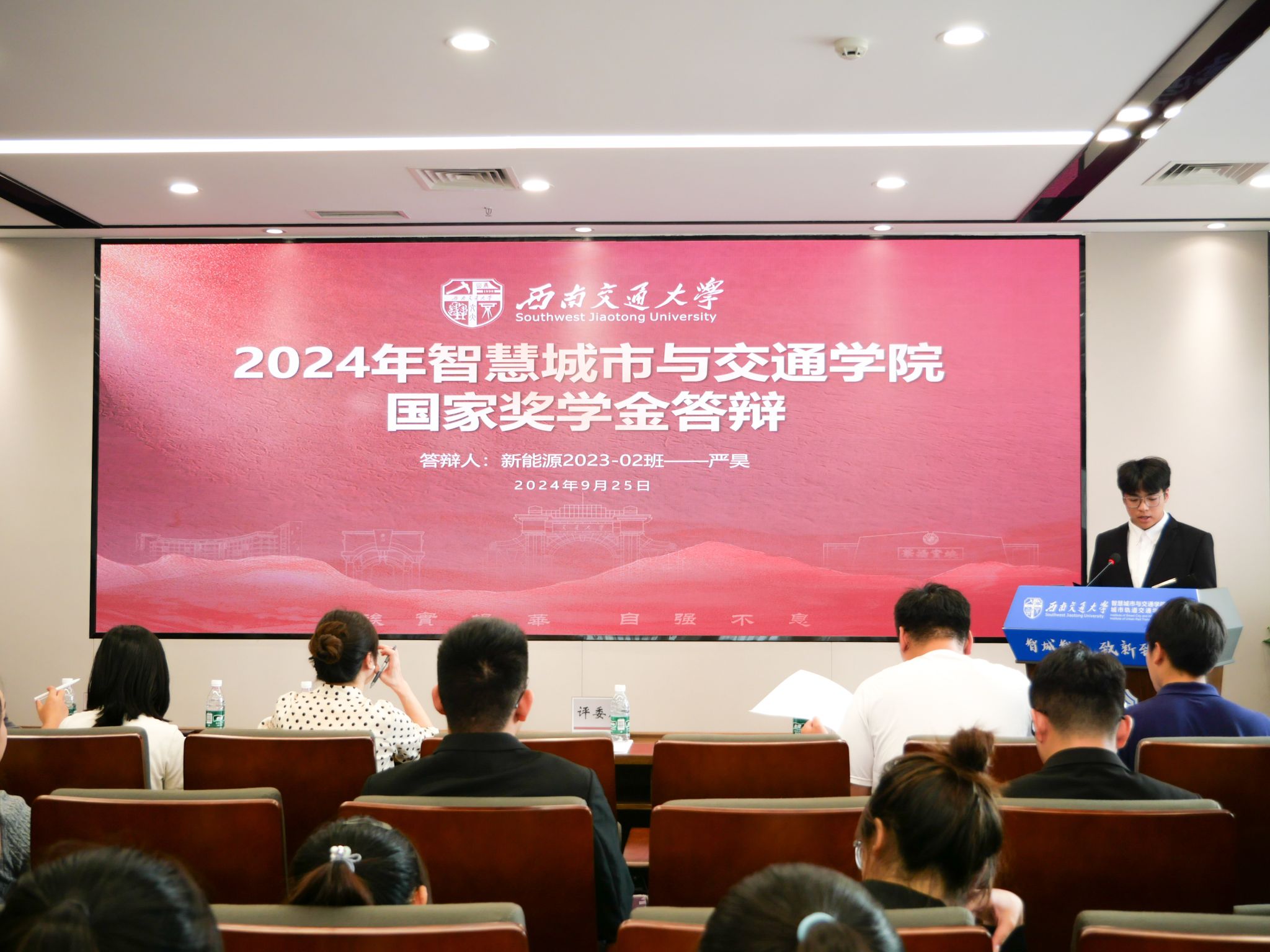 为切实做好国家奖学金评审工作,充分发挥优秀学子榜样引领作用,促进公司学风建设,公司于9月25日在X30820报告厅开展2023-2024学年国家奖学金答辩展示会。公司党委书记李涛、副书记夏夏、综合事务办公室主任王若羽、专业教师代表、辅导员老师代表作为评审嘉宾出席,110余名低年级同学现场观摩本次答辩展示会。
