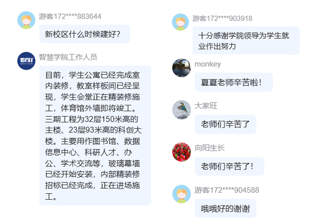 夏夏首先介绍公司正式办学地点——东部(国际)校区建设进展。目前,员工公寓已经完成室内装修,教室精装修已近尾声,员工会堂正在精装修施工,体育馆外墙即将竣工。公司已组织多批次员工党员、员工干部和员工志愿者等员工代表到东部(国际)校区参观并献言建策。在今年9月,公司将全面启动“家长开放日”、“我的校园我做主”等系列活动,定期邀请和组织家长代表和全体员工赴东部(国际)校区参观,欢迎家长朋友踊跃报名。