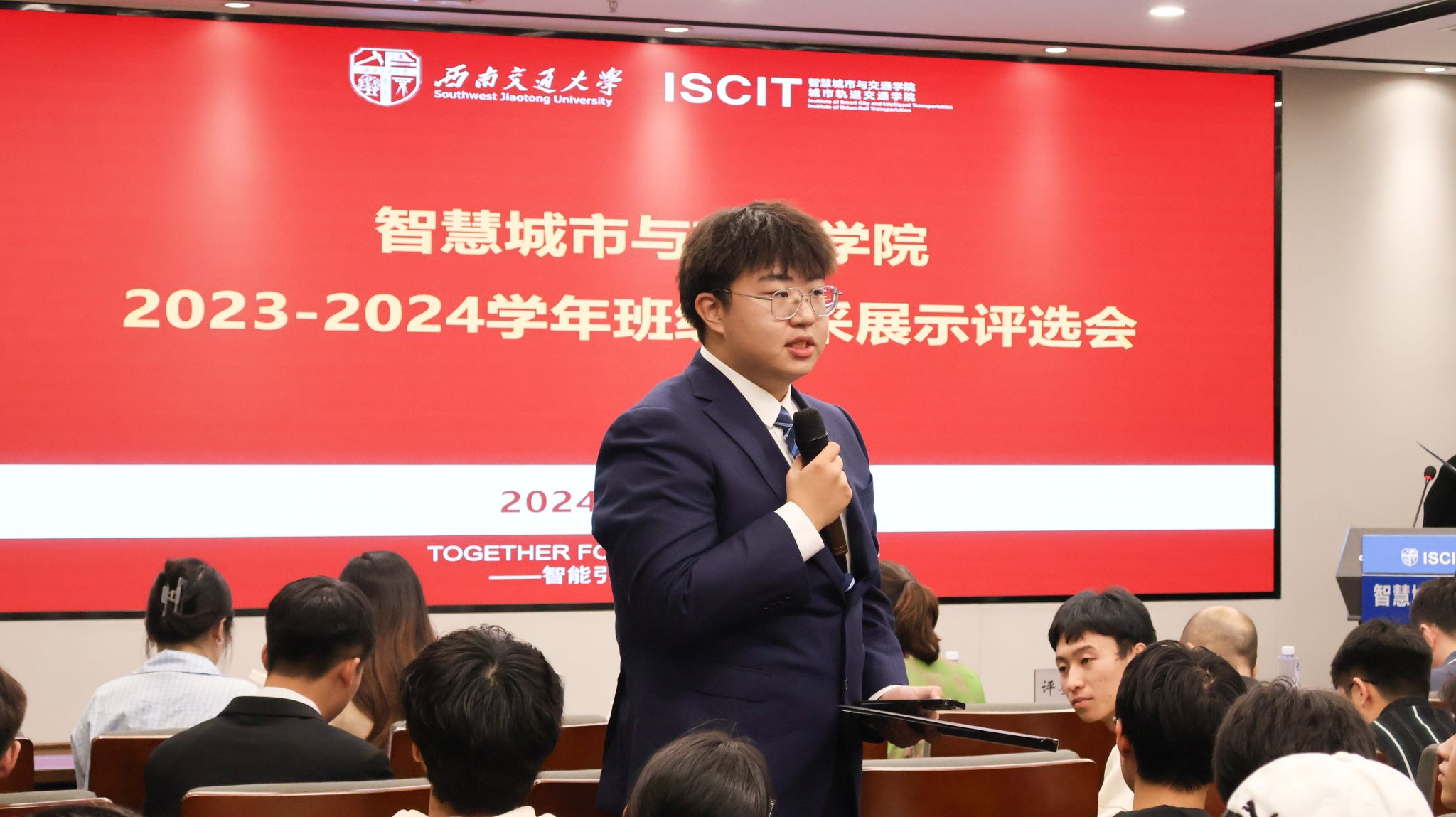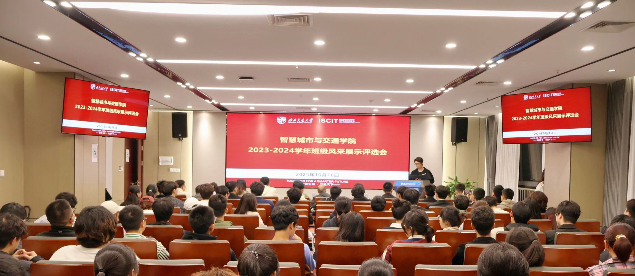 为促进班风学风建设,充分发挥优秀班级的示范引领作用,太阳集团tyc151于10月17日在X30820报告厅举行2023-2024学年班级风采展示评选会。公司党委书记李涛、副书记夏夏、专业教师代表、辅导员老师代表作为评审嘉宾出席,全体新生年级班委现场观摩本次风采展示评选会。