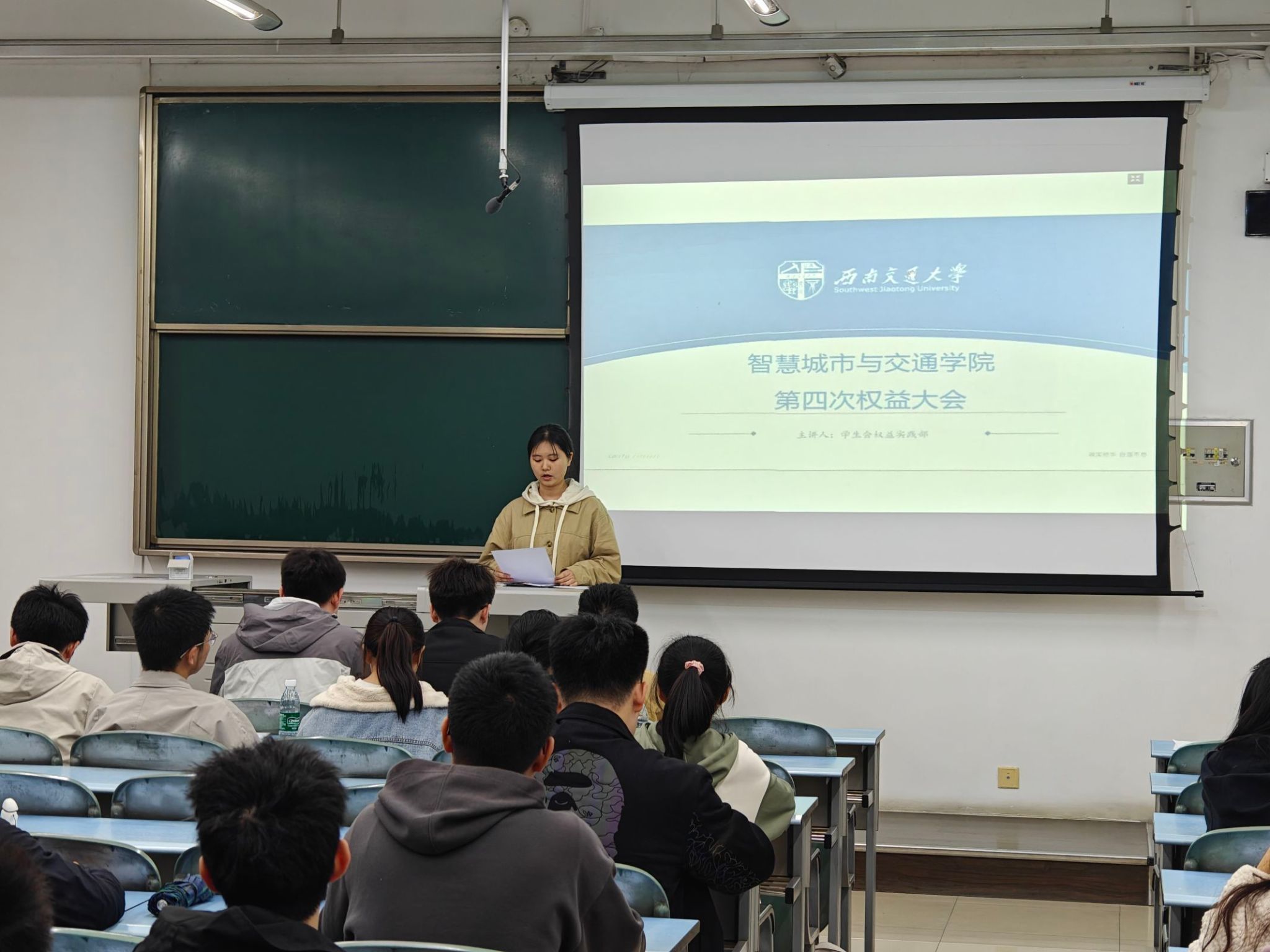 各班权益生活委员阐述其收集的权益问题。权益实践部叶泽远同学对问题进行回复,并表示将积极采纳同学的合理意见,尽快落实改进措施,为广大同学提供更加优质的服务和保障。