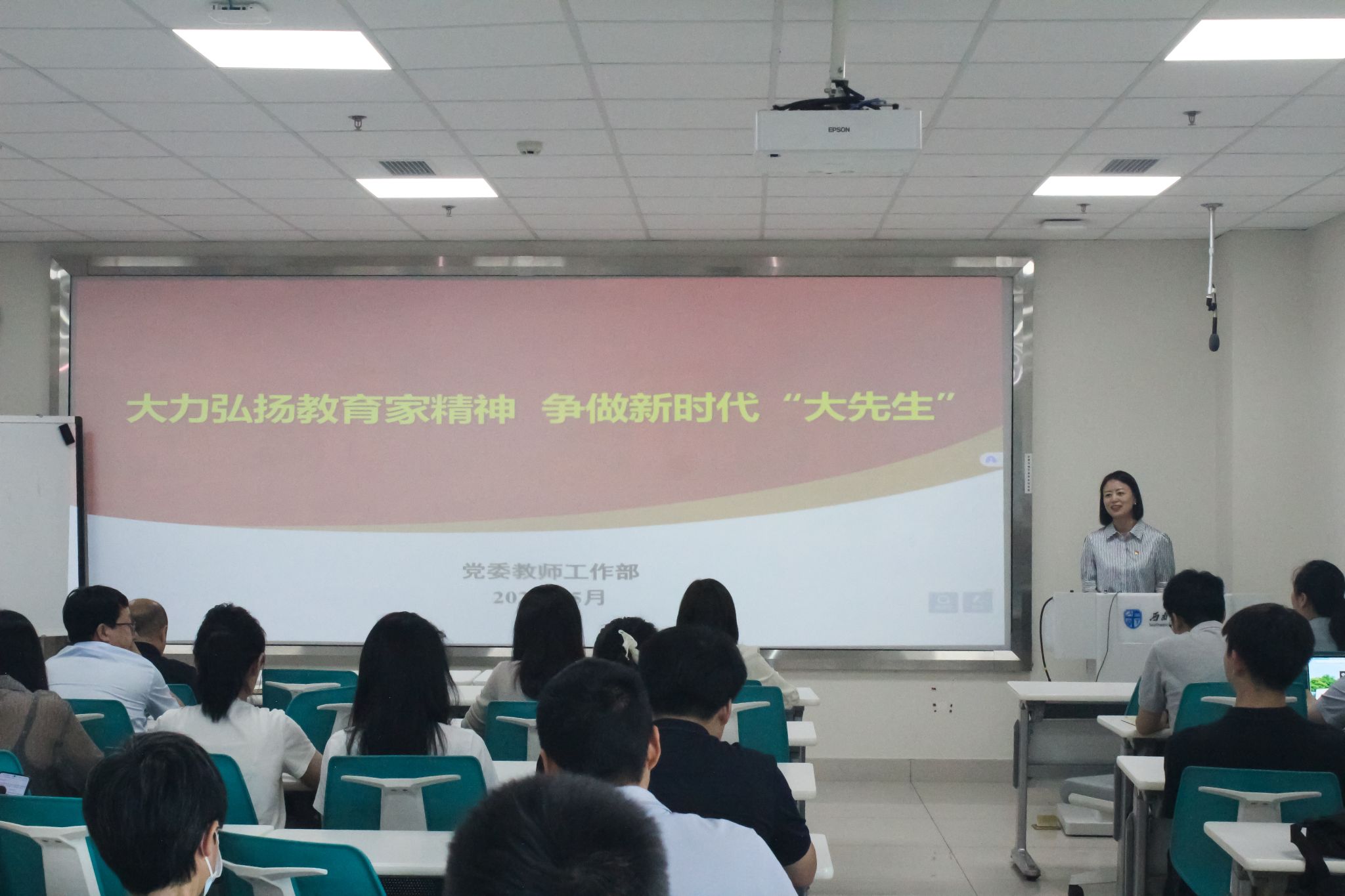 本次学习特别邀请马克思主义公司党委副书记邓秀芸老师做《大力弘扬教育家精神 争做新时代“大先生”》专题讲座。邓秀芸老师以生动的语言、详实的案例,围绕“高线”“标线”“红线”展开深刻阐述,“高线”是心怀家国、勇担使命的教育理想,是追求卓越、深耕育人的专业追求,鼓励教职工以教育家为榜样,树立远大教育抱负,不断探索创新教学方法,在育人的征程中勇攀高峰;“标线”是以身作则、言传身教的道德标准,要求教职工在日常工作与生活中,时刻以高标准的道德规范约束自己,为员工树立行为典范;“红线”则是坚守教育初心、严守职业底线的纪律意识。邓老师结合教育行业典型案例,警示全体教职工要知敬畏、存戒惧,坚决不触碰纪律“红线”,共同维护教师队伍的纯洁性与专业性。