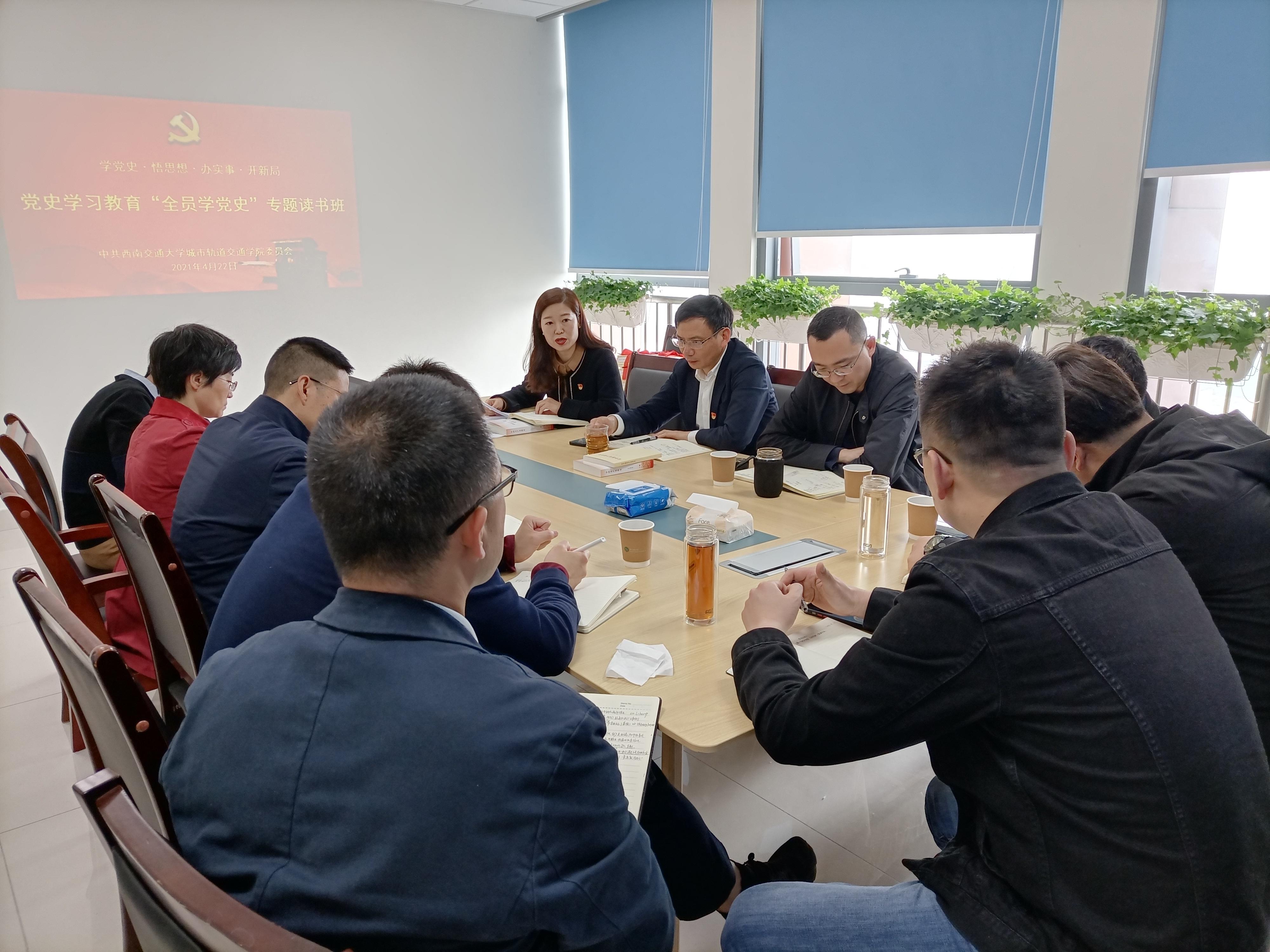为进一步推动党史学习教育往深里走、往心里走、往实里走,4月22日下午2点30,智慧城市与交通公司党委在31601会议室举行党史学习教育“全员学党史”专题读书班开班仪式。公司党委委员、经理何正友,党委副书记罗妍妍,副经理孙湛博,公司党史学习教育巡回指导组第二组周士炜出席仪式,公司各办公室全体教职工参加。仪式由罗妍妍主持。