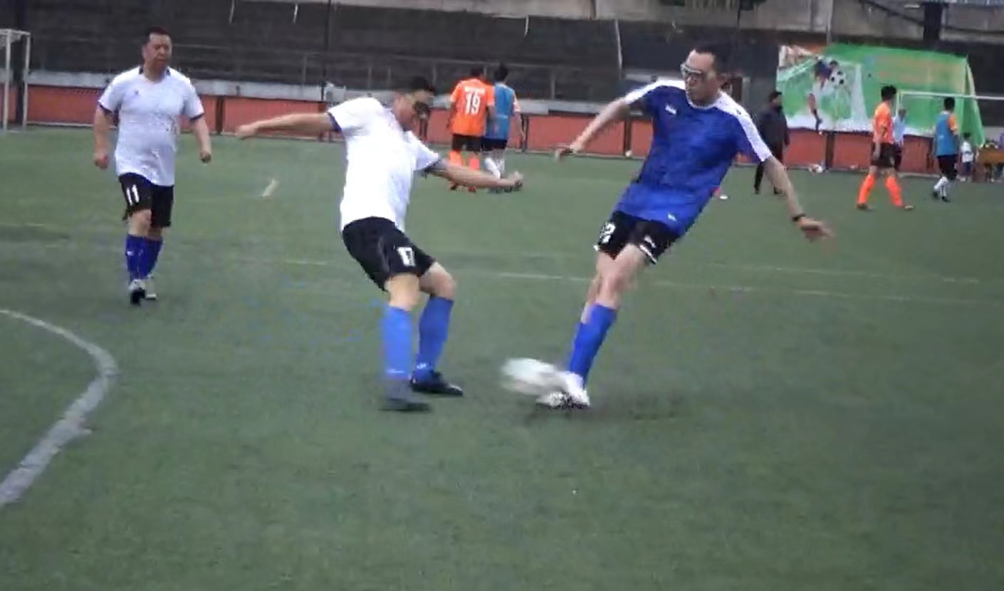 上半场,双方你来我往,对拼激烈。公司凭借2号何正友前场积极拼抢创造出射门机会,由8号俞建海在禁区附近抬脚远射,球贴着草皮穿过两名防守队员滚入对方球门死角,打入公司历史上教工足球队首次参加公司正式比赛首个进球,公司1-0取得领先。随后,对方在我方球门前混战中趁乱也打入一球,双方战平。公司果断要求暂停,重新布置战术。队员们上场后稳扎稳打,凭借团队配合由39号邓军连入两球,3-1结束上半场比赛。