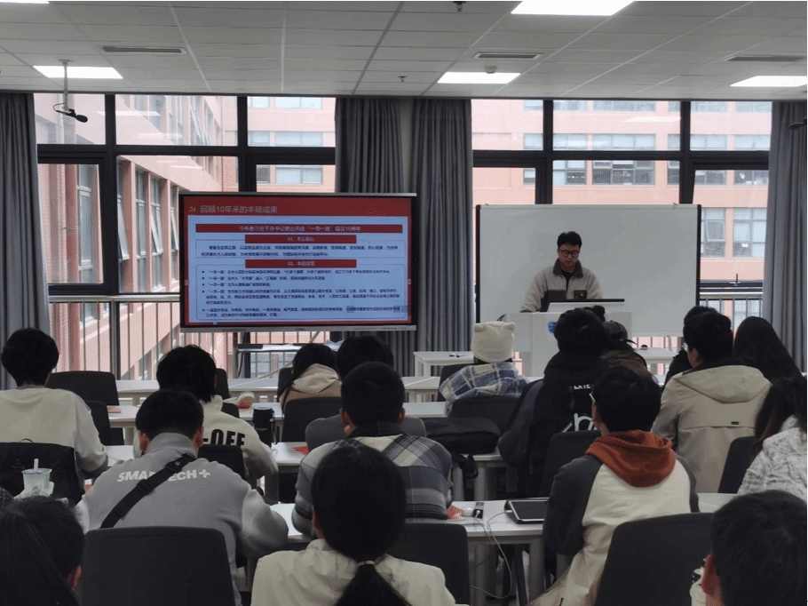 随后,支部全体党员深入学习领会习近平总书记在中央政治局第九次集体学习时的重要讲话精神和第三届“一带一路”国际合作高峰论坛开幕式上的主旨演讲精神,从铸牢中华民族共同体意识和构建人类命运共同体两个方面对党的民族工作和“一带一路”建设所取得的丰硕成果进行了学习了解,党支部成员付俊娴、周亦璟同志进行了学习感悟分享。