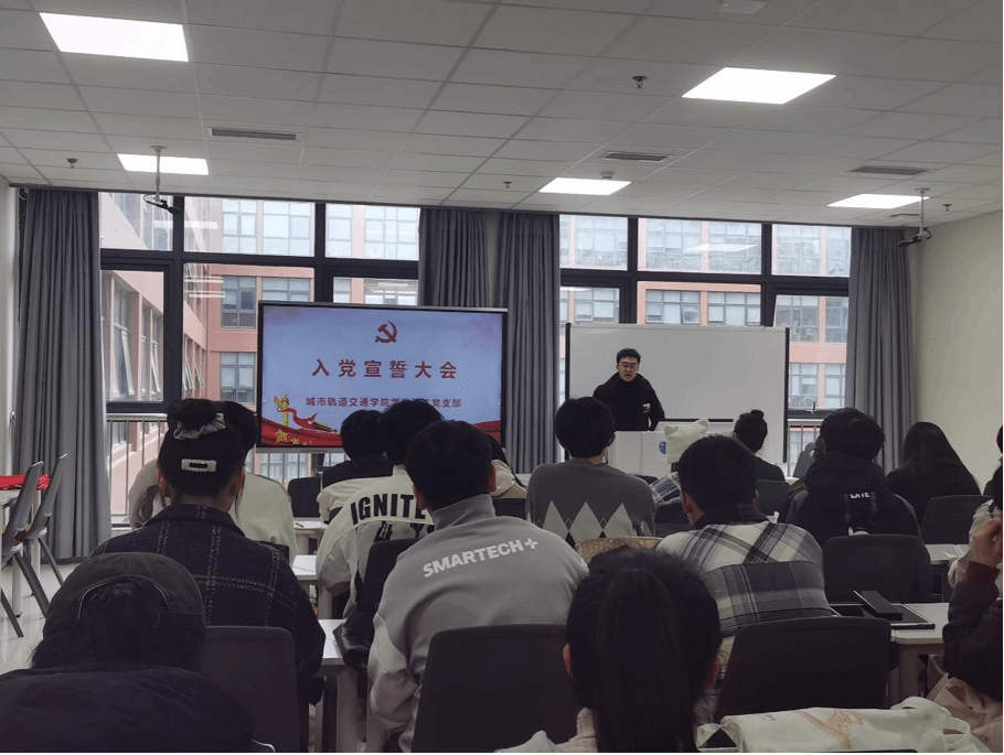 入党宣誓在庄严肃穆的《国际歌》中拉开序幕,全体党员在王子琦同志的带领下,面向党旗,高举右手,庄严宣誓。宣誓结束后,支部党员为魏岚、敬春元和冯琪祺三位同志举行了“政治生日”庆祝活动。