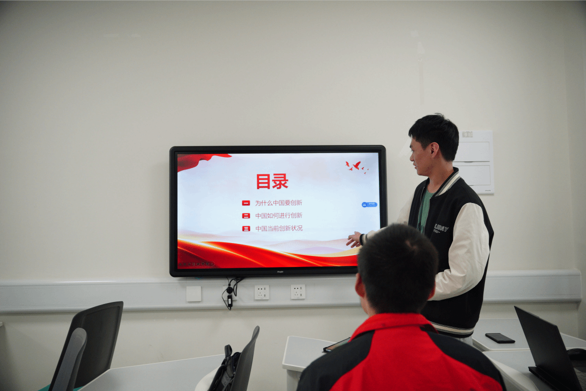 唐世民、刘金阳同志代表支部成员进行阶段汇报,联系理论学习成果,结合实践学习内容,分享前期收获,深化了支部成员对智能制造、智能建造专业前沿的认识。