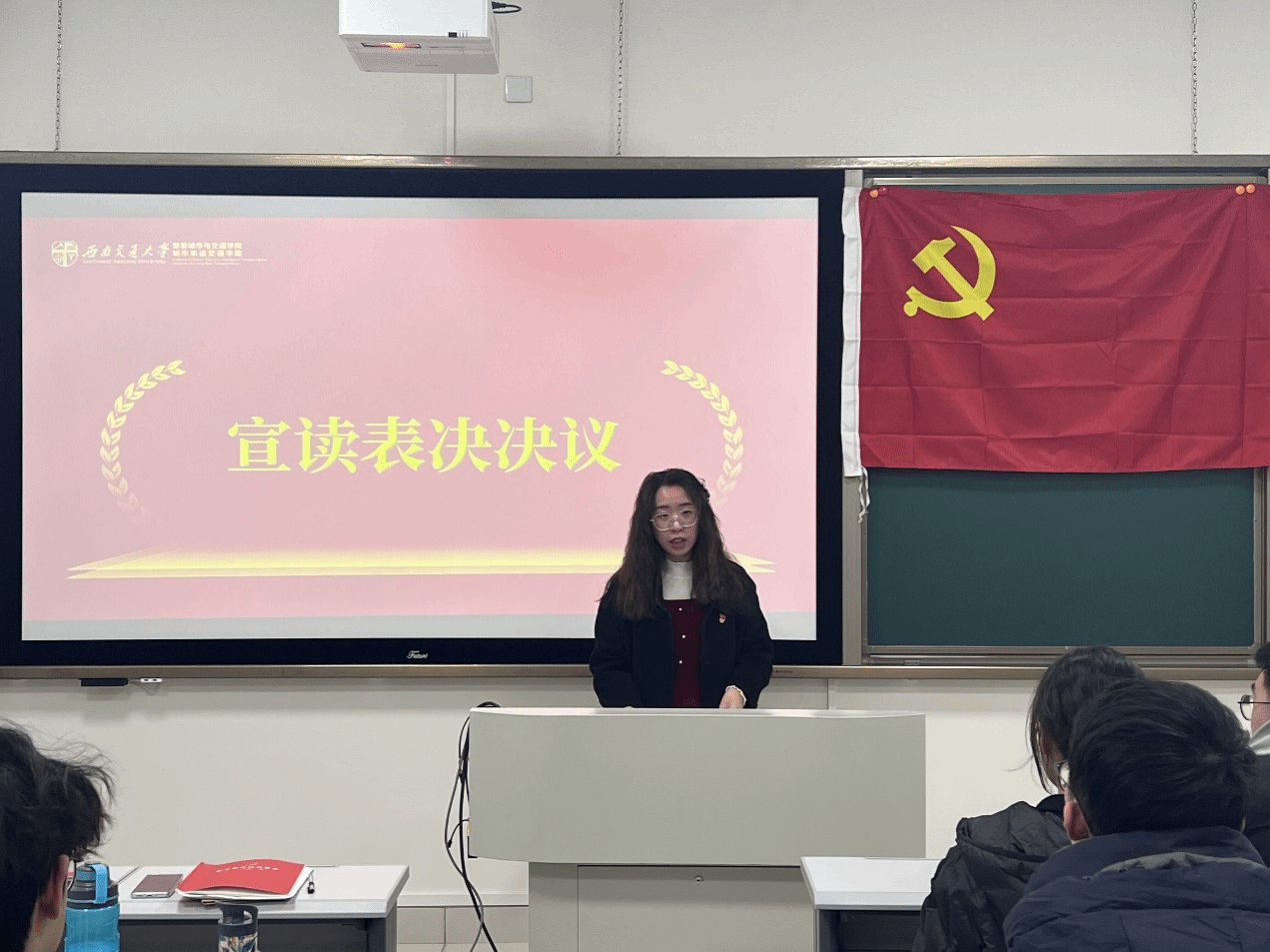 最后,支部书记魏岚同志祝贺17名新入党的同志,希望他们坚定理想信念,不断提高政治素养,积极履行党员职责,发挥新工科专业所长,为强国建设、民族复兴贡献青春力量。
