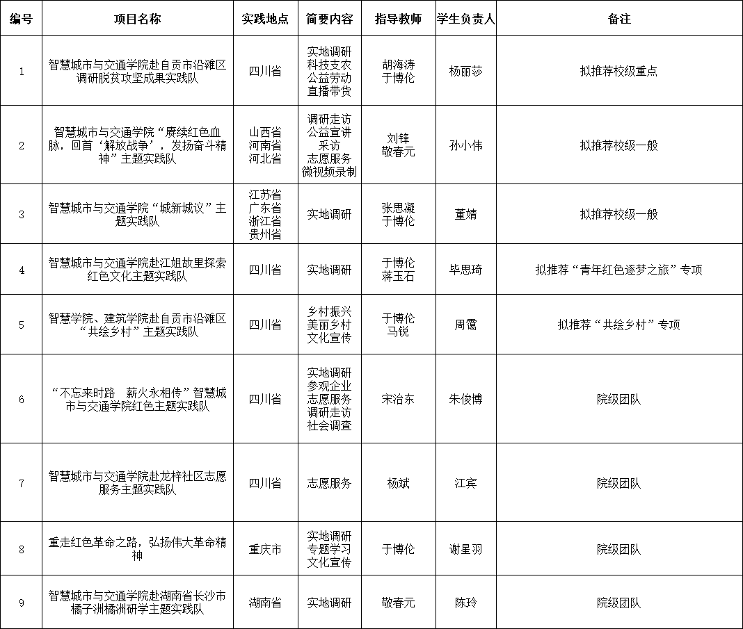 自《关于开展2022年老员工暑期“三下乡”社会实践活动的通知》发布以来,公司广泛宣传,同学们积极参与,全院共组建9支社会实践活动队。经公司团委汇总审核,立项结果如下: