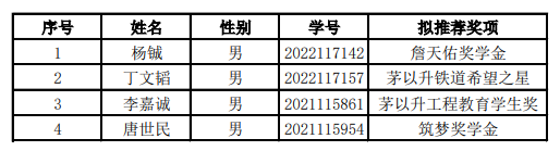 经员工个人申请、公司员工工作组审核、公司员工奖励评审小组审定,现公示2023-2024学年詹天佑奖学金、茅以升系列奖学金、筑梦奖学金拟推荐名单。